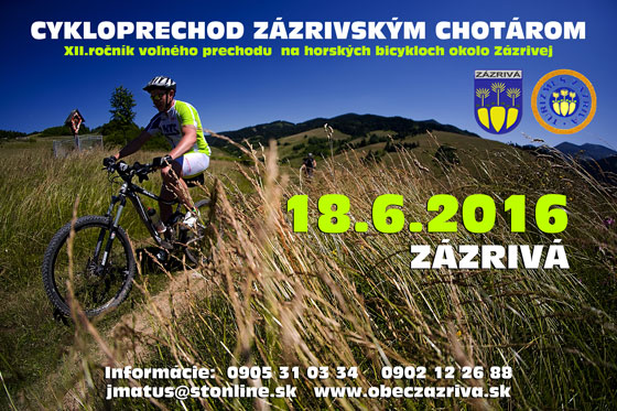 Cykloprechod zázrivským chotárom v Zázrivej Posted on 15. júna 201615. júna 2016 by Anna Gáborová Viac info o tomto podujatí nájdete TU. Posted in Pozvánky.